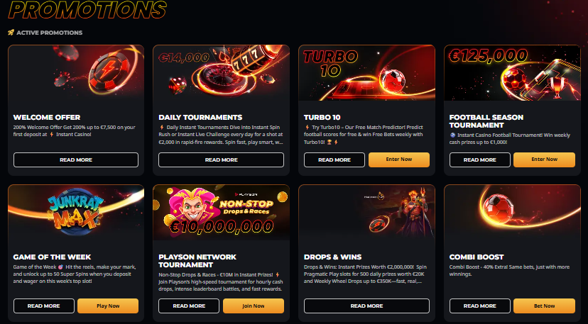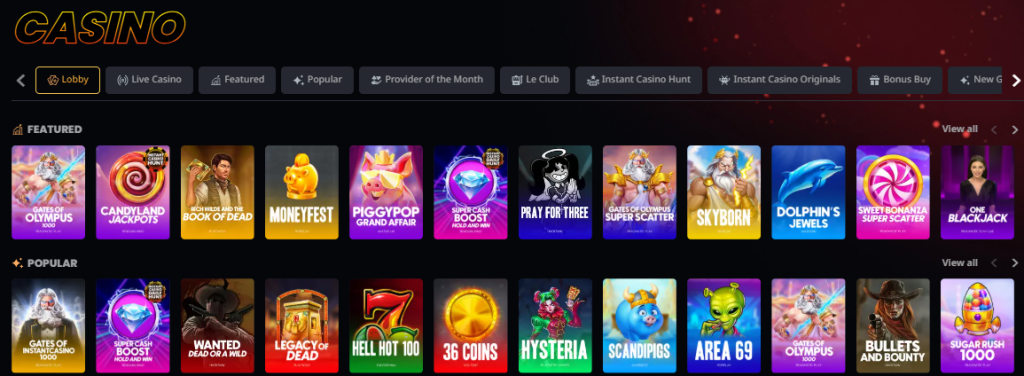 Instant Casino is known for quick payouts and smooth gameplay. It offers slots, blackjack, and live dealer options. Players enjoy a simple, fast interface for easy navigation. The platform also ensures fast transactions, especially with crypto payments.